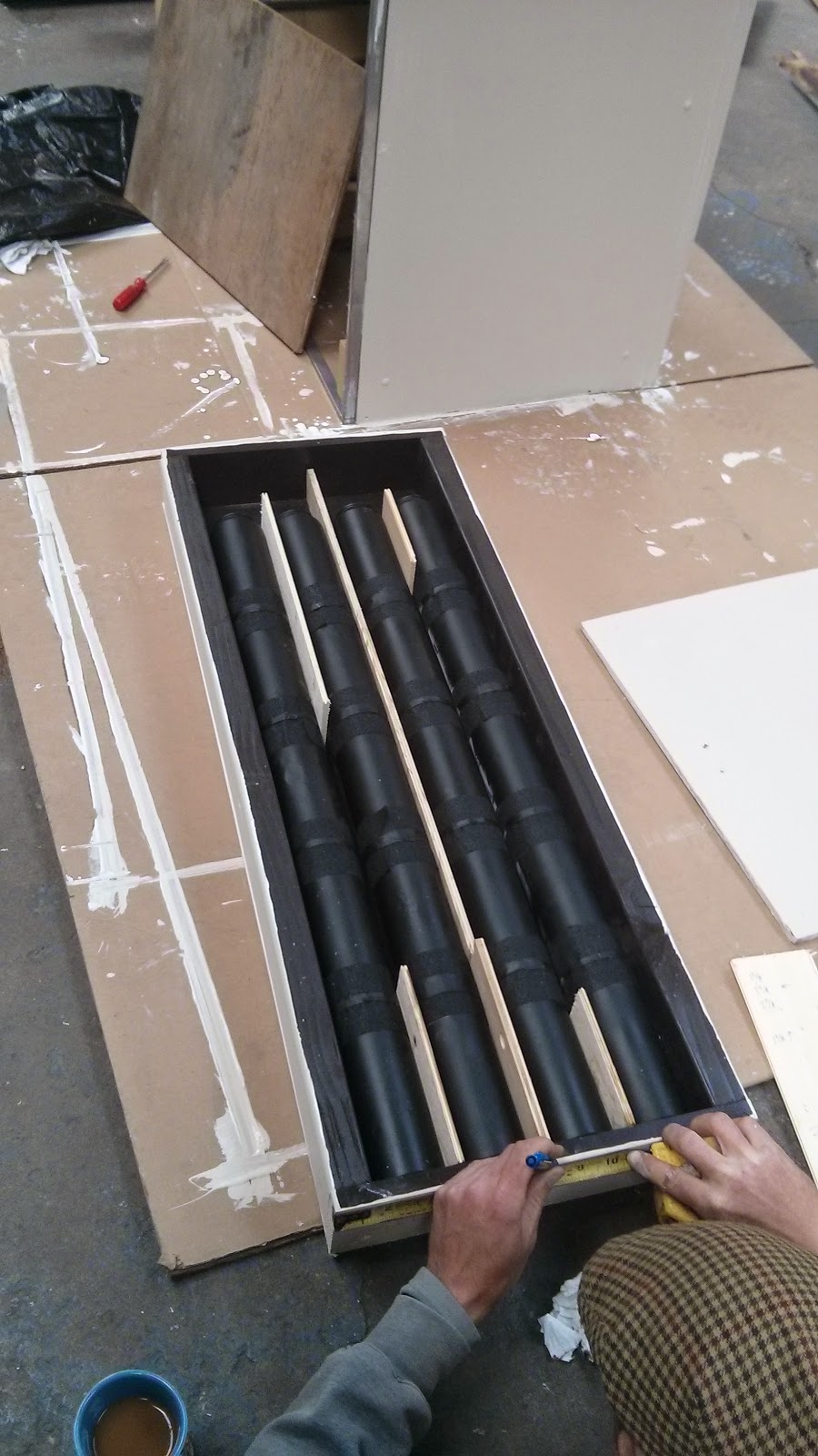 We picked up a shelf structure, curbside, and commenced planning how to turn it into a solar dehydrator. A few google searches, videos, and picture mash-ups later, we hatched a plan to connect several beer cans into metal tubes to heat up air and channel it into a drying chamber. Scrap-gathering turned up almost all the materials we needed, then a quick trip to a building materials recycling center completed the set.